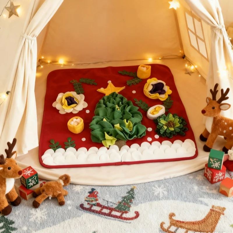 Ti presentiamo il nostro tappetino da fiuto per cani a tema natalizio, una miscela perfetta di divertimento festivo e arricchimento coinvolgente per il tuo amico peloso.