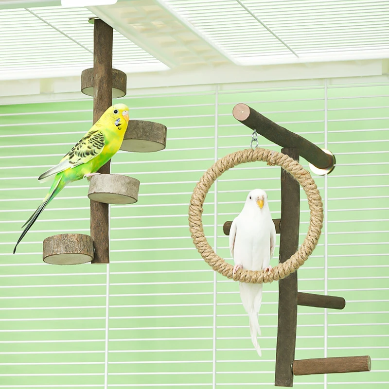 Gabbia per pappagalli Altalena Giocattolo Scaletta Giocattolo da masticare per uccelli da compagnia Filo di cotone appeso per uccello Noia Gabbia per rompere il cerchio sospeso Giocattolo