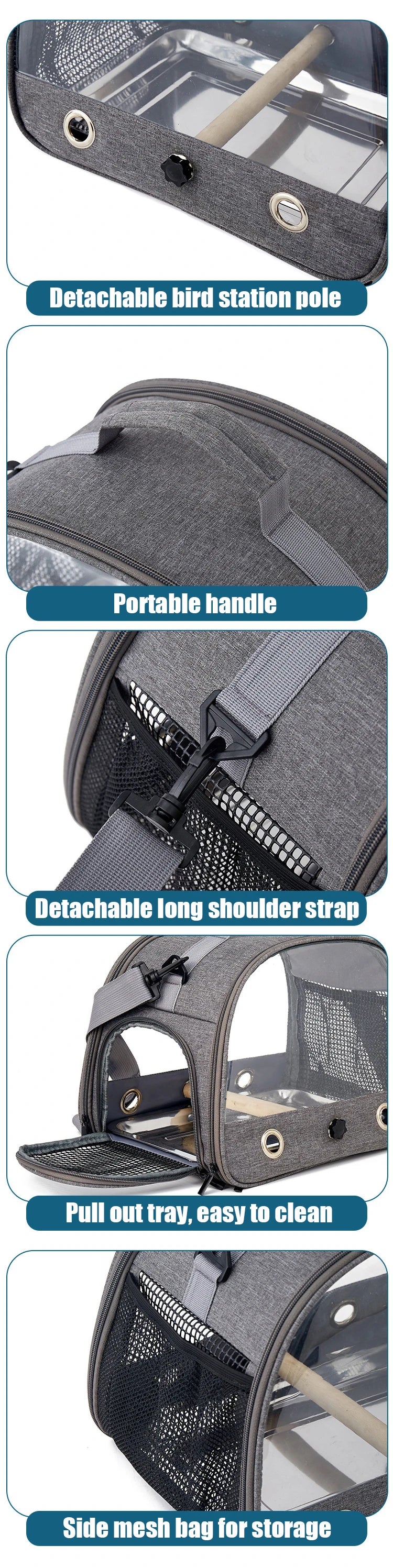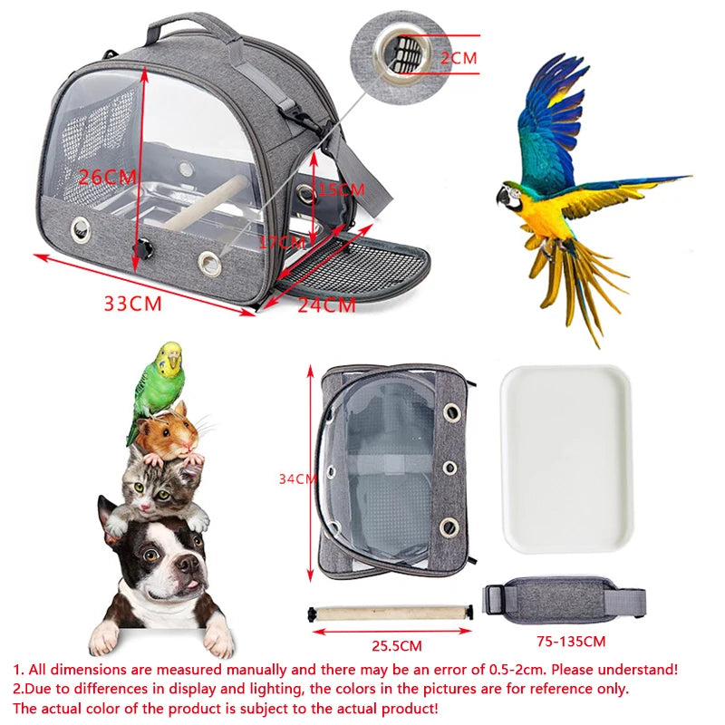 Porta uccelli da viaggio Porta uccelli portatile da trasporto con vassoio Piccolo animale domestico Borsa multifunzionale per uccelli per pappagallo Porta gatti all'aperto