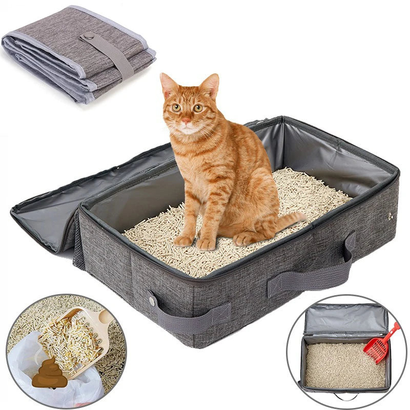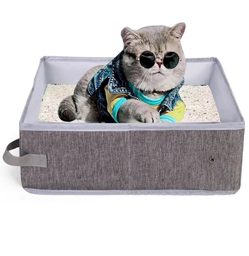 Lettiera da viaggio in tessuto lavabile e impermeabile Oxford con cerniera e coperchio, resistente ed igienica, perfetta per le vacanze!