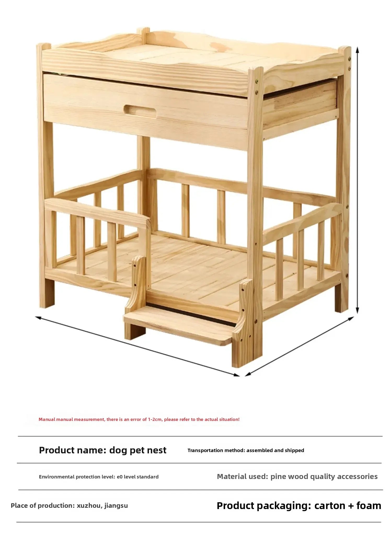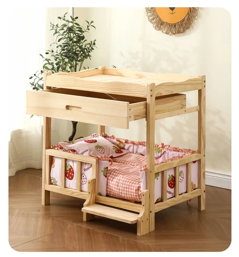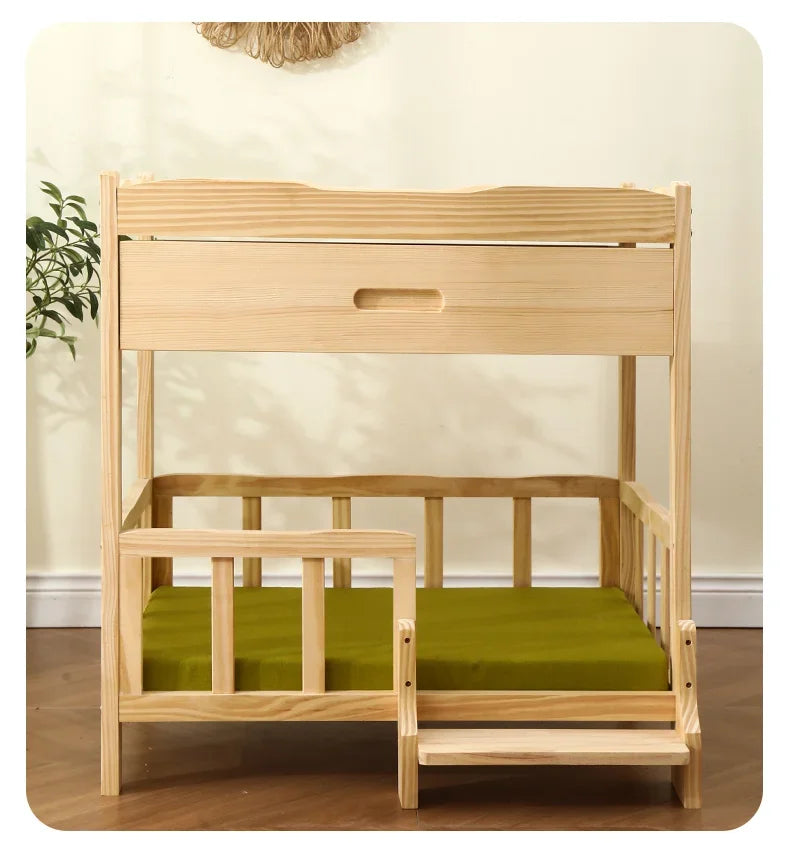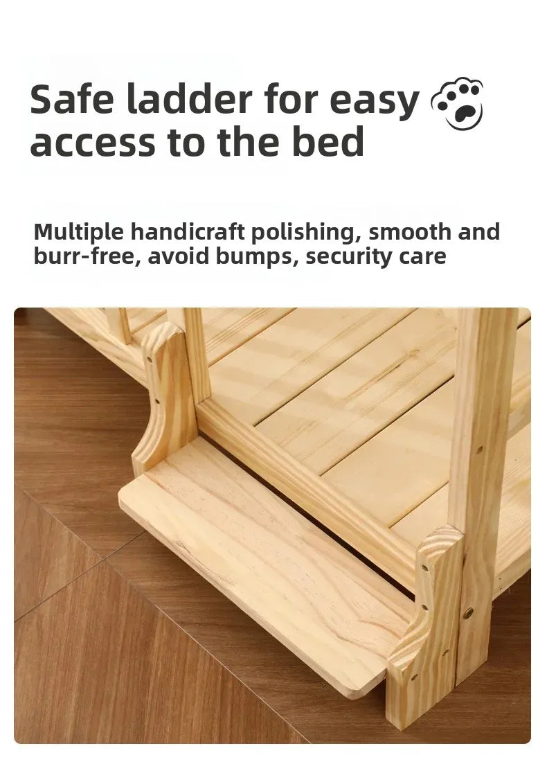 Letto principessa in legno massello a 2 strati per animali domestici Forniture universali per cani e gatti Comodo nido per cani traspirante Comoda scala da arrampicata