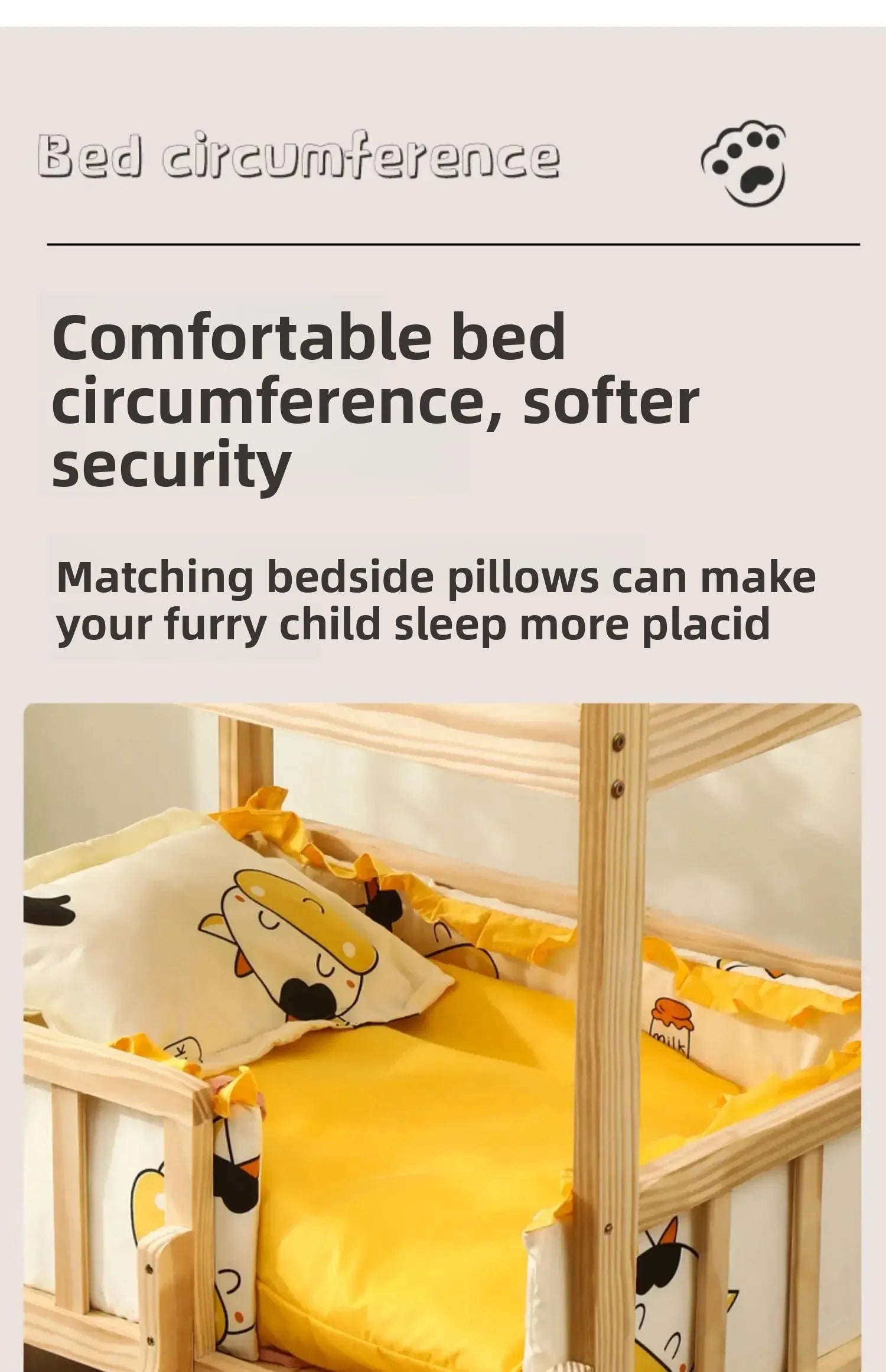 Lettino per animali domestici in legno massello a doppio strato con cuscino lavabile, lettino da principessa per cani o gatti di piccola e grande con ventilazione e design antiumidità