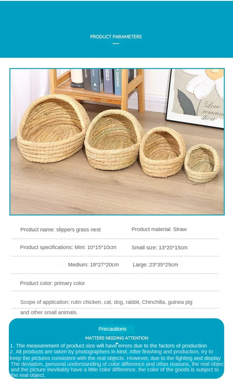 Erba tessuta Nido di uccello Coniglio Nido di erba Tappetino di erba Accessori per criceti Pantofole Nido di coniglio Coniglio Inverno caldo Forniture per animali domestici