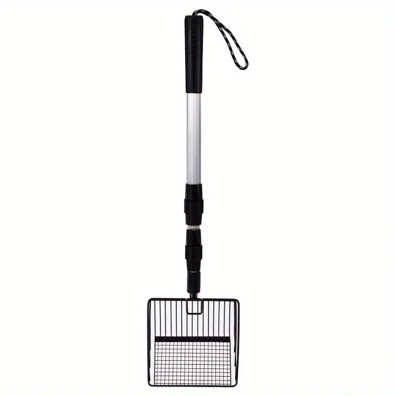 Paletta per lettiera per gatti estensibile Pala per setacciatura per pollaio Manico lungo Accessori in metallo Strumenti per la separazione di cacca e detriti da giardino