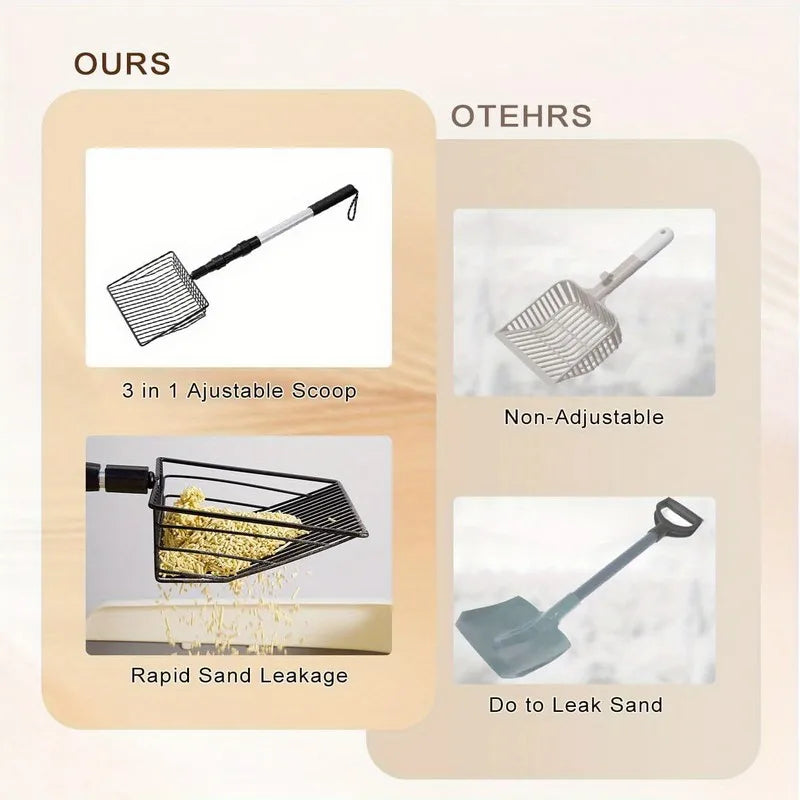Versatilità 3 in 1: questo paletta per cacca in metallo regolabile svolge tre funzioni essenziali: raccogliere, setacciare e separare i rifiuti, rendendolo uno strumento versatile per pulire pollai, lettiere e aree del giardino.