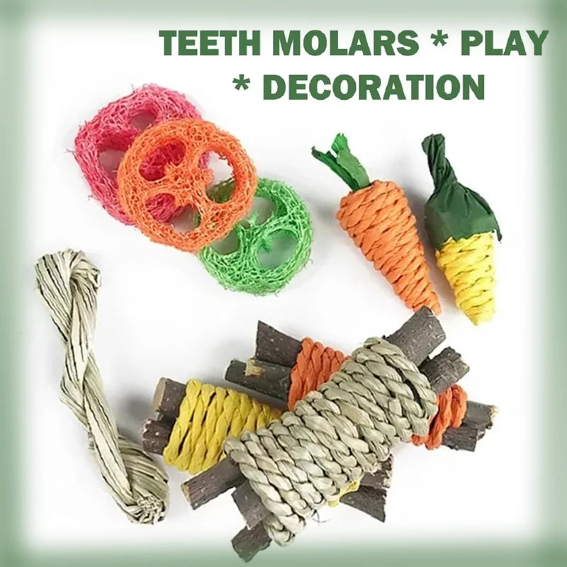 Giocattoli da masticare per piccoli animali domestici, in materiali totalmente naturali, che impediranno al vostro piccolo amico di farsi i denti su accessori di plastica e sbarre!