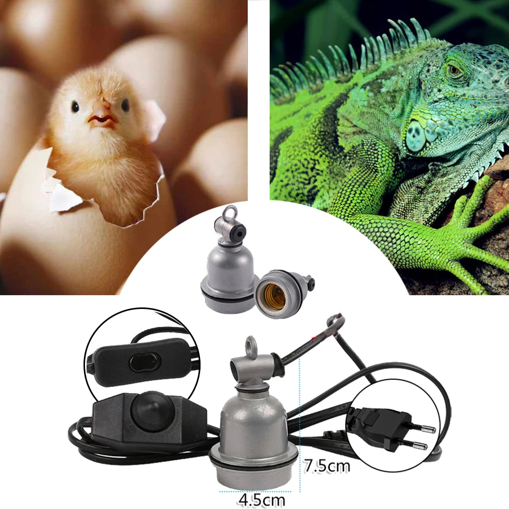 Staffa per lampadina riscaldante impermeabile con interruttore in ceramica E27 - lampade rettili, pulcini, allevamento